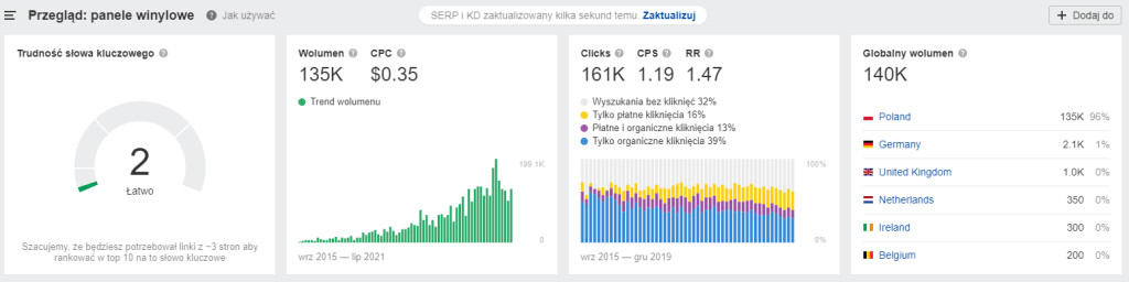 - Panel winylowy wg Semrush wyglądaja następująco: 5,4 K wolumenu.